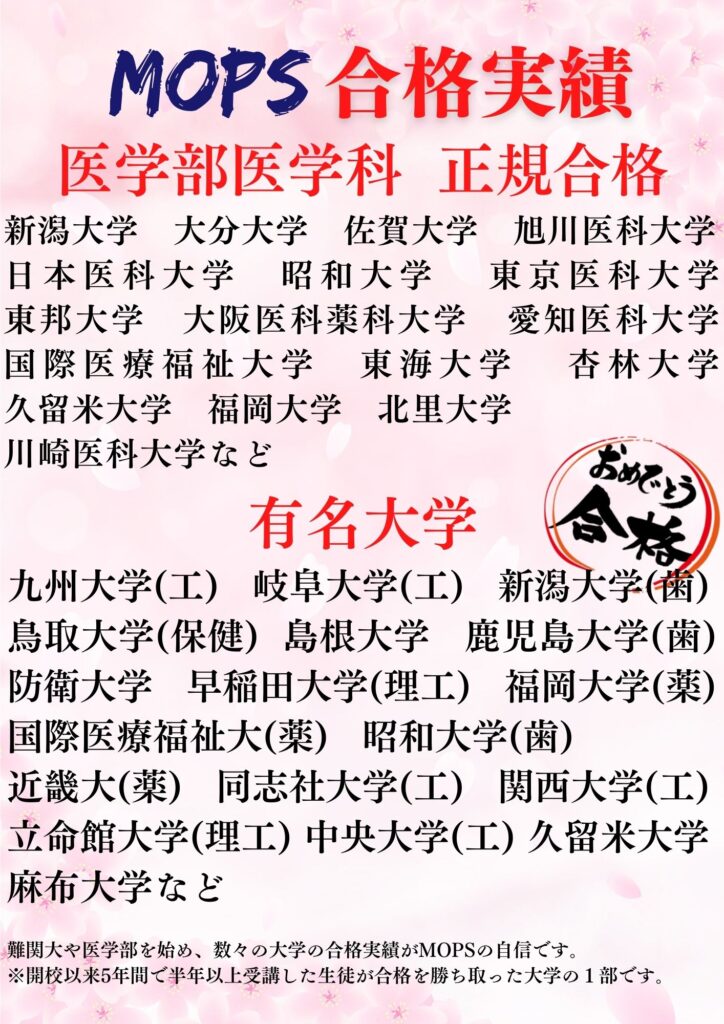 ※MOPSで正規授業を受講した生徒の合格の1部です。